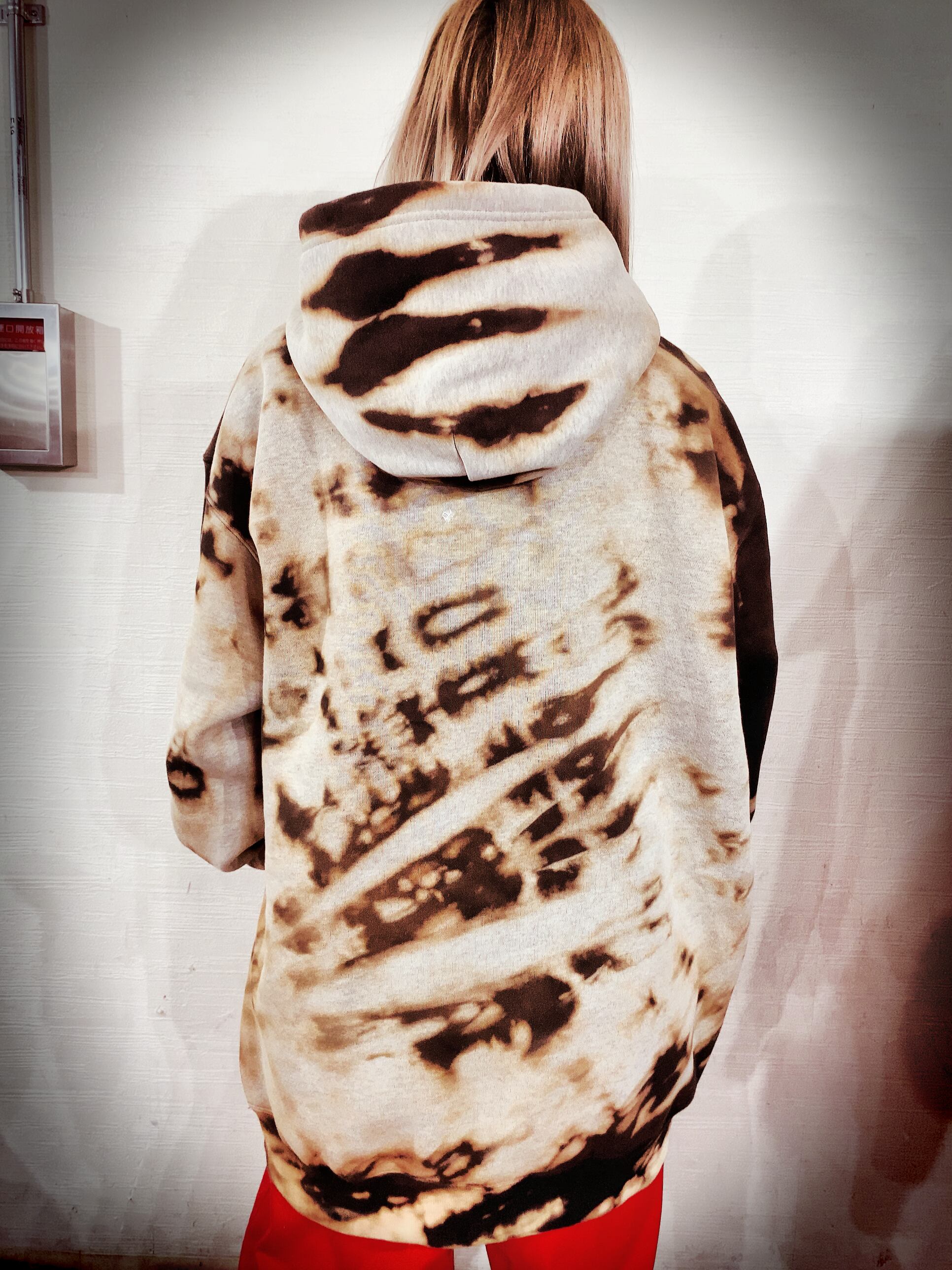 タイダイ染めによる生地全体の大胆な仕上がりと